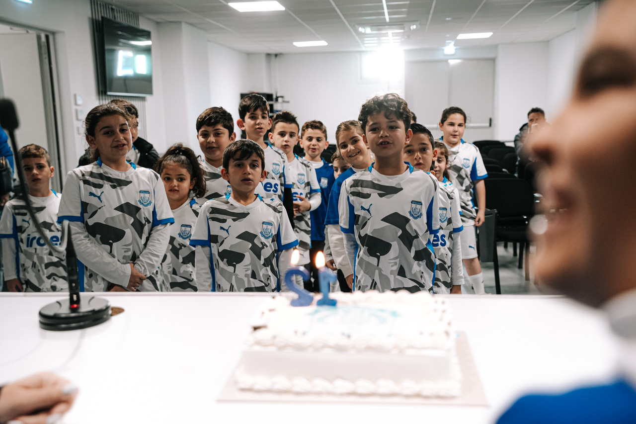 Ιδιαίτερα συγκινητική ήταν η στιγμή για τον μικρό Γιώργο, ο οποίος γιόρταζε τα γενέθλιά του. Με πρωτοβουλία της οικογένειάς του, οι παρευρισκόμενοι του τραγούδησαν, χαρίζοντάς του μια αξέχαστη εμπειρία, πριν εισέλθει στον αγωνιστικό χώρο συνοδεύοντας τον αγαπημένο του ποδοσφαιριστή.
