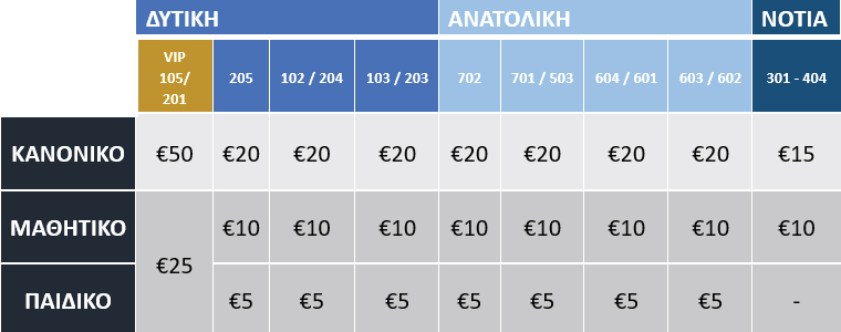 Τιμές εισιτηρίων: