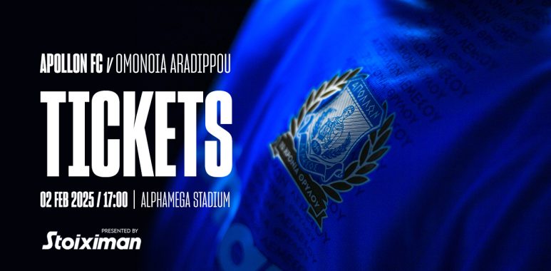 Η Εταιρεία Απόλλων Ποδόσφαιρο (Δημόσια) Λτδ ανακοινώνει ότι αρχίζει στις 15:00 η προπώληση εισιτηρίων για τον αγώνα της 21ης αγωνιστικής του Cyprus League by Stoiximan με αντίπαλο την Ομόνοια Αραδίππου ο οποίος θα διεξαχθεί την Κυριακή (02/02, 17:00) στο Στάδιο “Αλφαμέγα”.