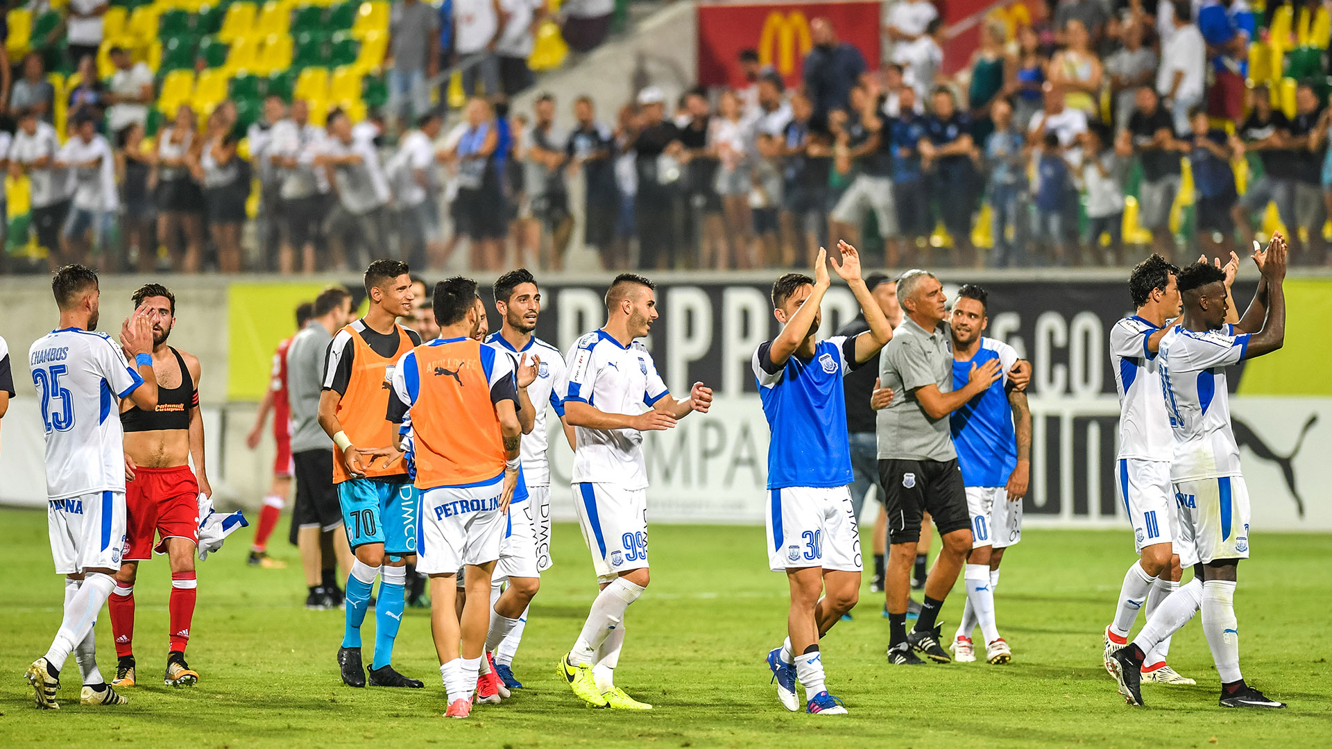 The dream started to go away only in the 10th minute of the match, as Apollon was back in the score with a goal by Hassan, however the self-denial and the faith shown by our players to reach the qualification, was transformed into a qualifying goal in the 50th minute with Skembri, who scored by sending our team to the Monaco draw. Ten minutes before the end, Da Silva’s penalty was blocked by the opposing goalkeeper, but fortunately it did not cost.