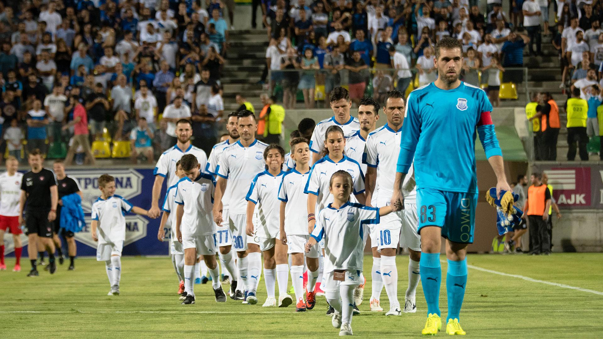 For our team to reach one step ahead of the UEFA Europa League groups, as a Cup Winner it started its obligations from the 2nd qualifying round against Zaria Balti of Moldova, which it eliminated with two victories (3-0 and 2-1). In the 3rd qualifying round the task was much more difficult as the opponent was the historic Aberdeen Scotland. In the first match in Abertin we lost 2-1 but in the replay of the 3rd of August in the crowded AEK Arena, the footballers of Mr. Augustis wrote another “golden” page in the history of the club, after with an imposing appearance they defeated the Scots with 2 -0 and got the ticket for the playoffs of the tournament, where we would face Midtjylland Denmark.