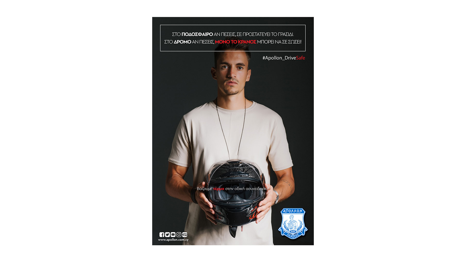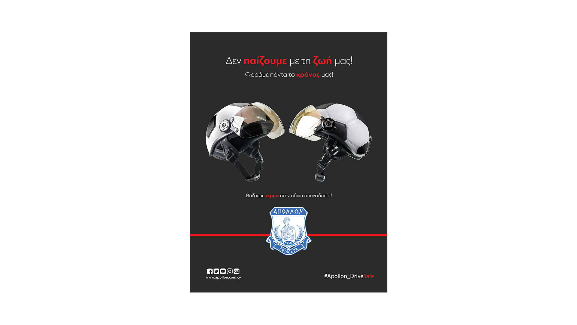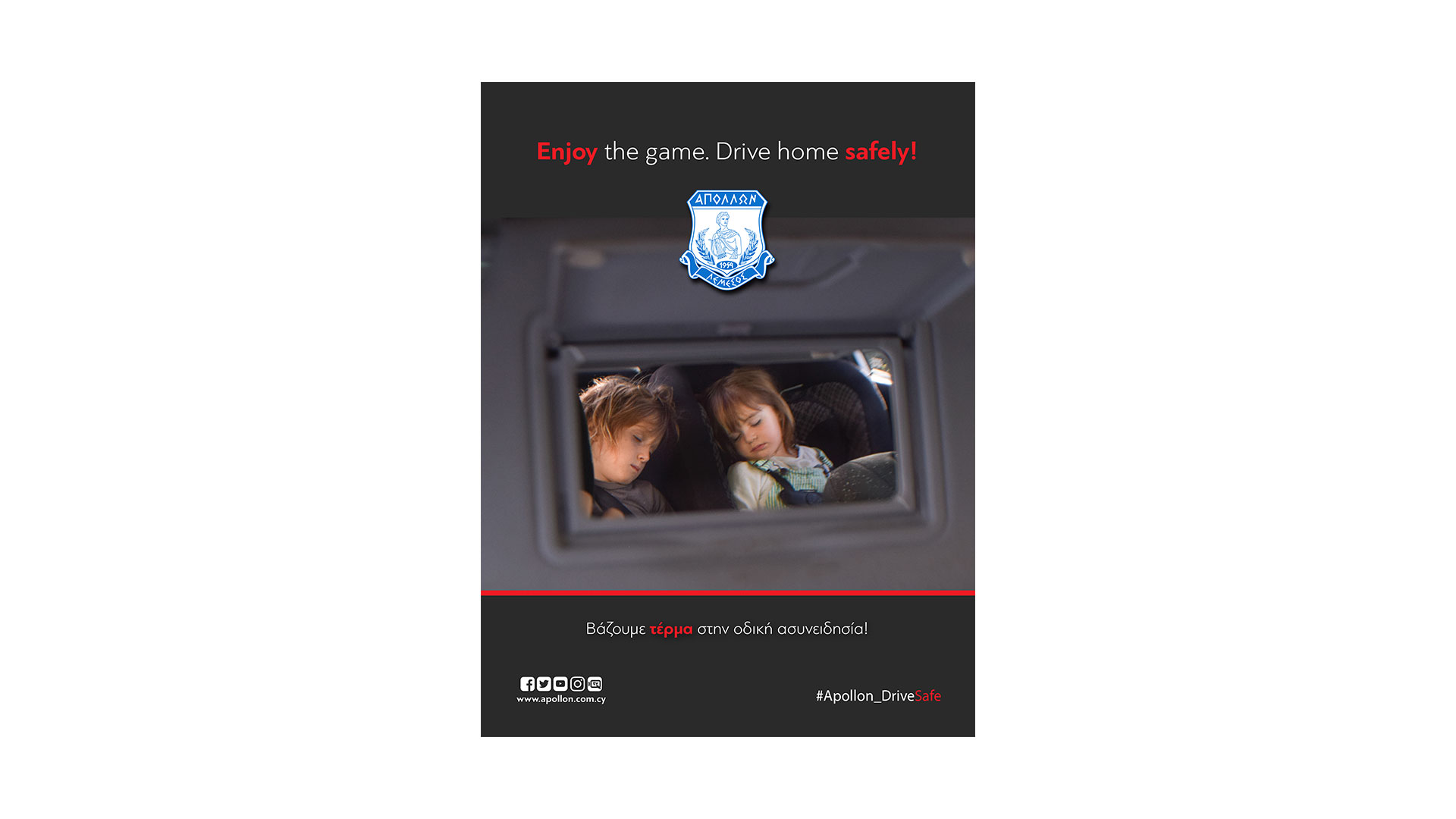 The main message of the campaign is “We put an end to driving unconsciousness” and the hashtag #apollon_drivesafe. Posts on our official website and on all Apollon’s social media, use of the creatives for Match Day, Starting XI, Half / Full Time, entries in all the Match Programs that were released in all the European matches of the team, messages on the giant screens and on the stadium signs, are some of the actions that have already been done and continue to this day.