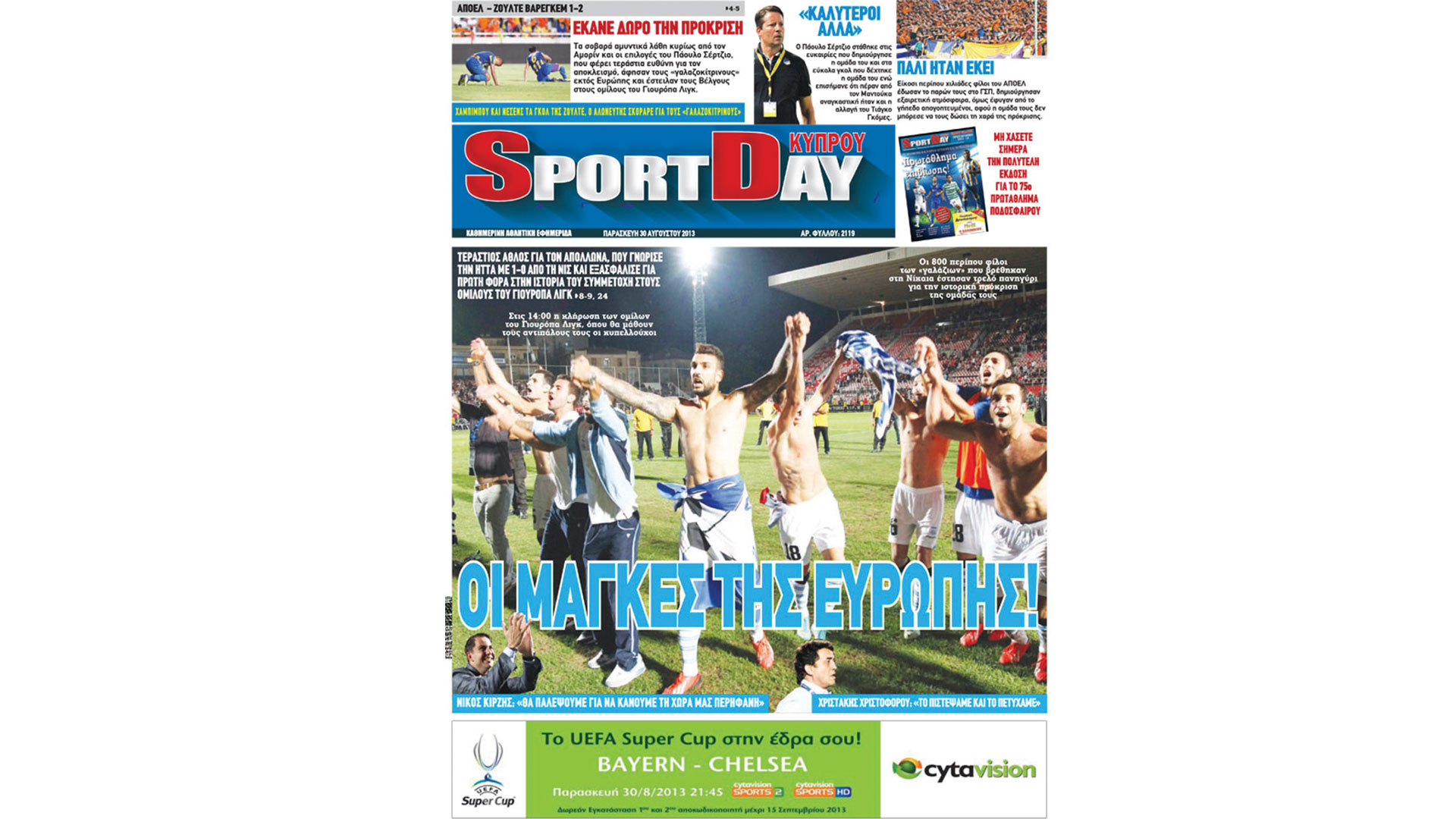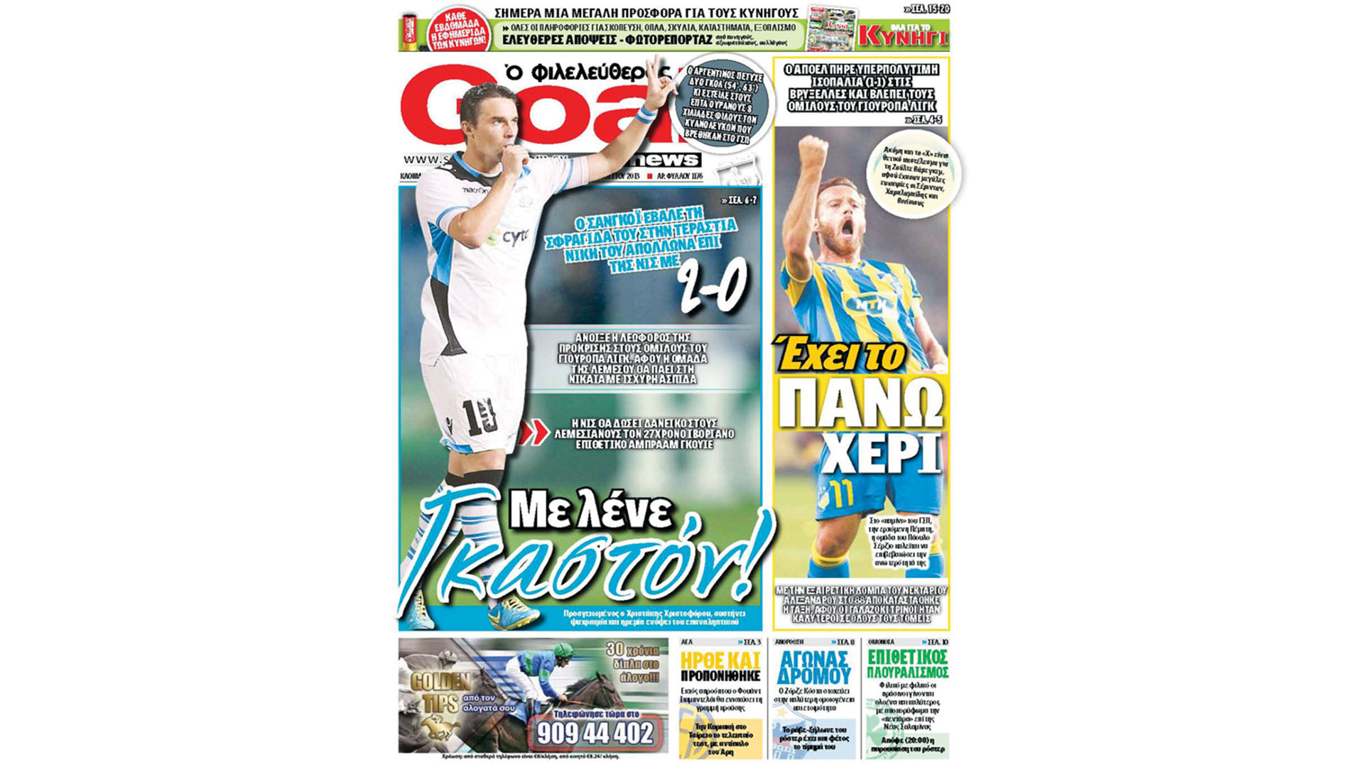August 22, 2013. In the burning GSP, Apollon was upsent, Sangoi had a party and with two personal goals of the Argentine (54΄ and 62΄) a solid foundation was laid for qualification to the Europa League groups. Excellent performance by the “blue and white” footballers, especially in the replay, who seemed ready for great things.